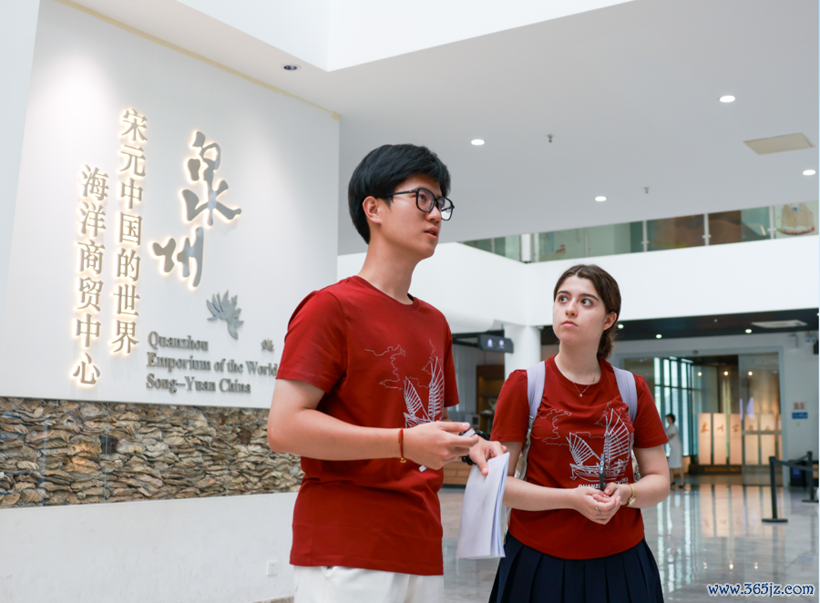 走进福建省国际交通史博物馆,容身展厅进口被誉为“泉州版简洁上河图”的仿古画卷《刺桐梦华图》前,来自西班牙托莱多的留学生露西娅(Lucia)对传神的动画投影戒指啧啧称奇。画卷中,刺桐港内不同国度多样商船收集口岸,七大城门防守的古城内马水车龙,商贸、文化、生涯互融互通。